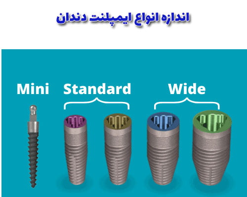 ایمپلنتهای پهن نسبت به ایمپلنت استاندارد، قطر بیشتری دارد و برای دندانهای عقب استفاده میشود. این نوع ایمپلنت بیشتر برای دندانهای کرسی استفاده میشود. و ایمپلنت مینی برای افرادی که استخوان ضعیفی دارند کاربرد دارد.